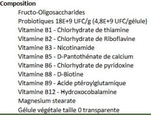 Dans cette nouvelle formule, les probiotiques sont associés à des vitamines qui contribuent au bon fonctionnement de l’organisme, notamment en participant à la réduction de la fatigue et au fonctionnement normal du système immunitaire.